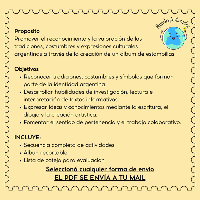 Promover el reconocimiento y la valoración de las tradiciones, costumbres y expresiones culturales argentinas a través de la creación de un álbum de estampillas.
