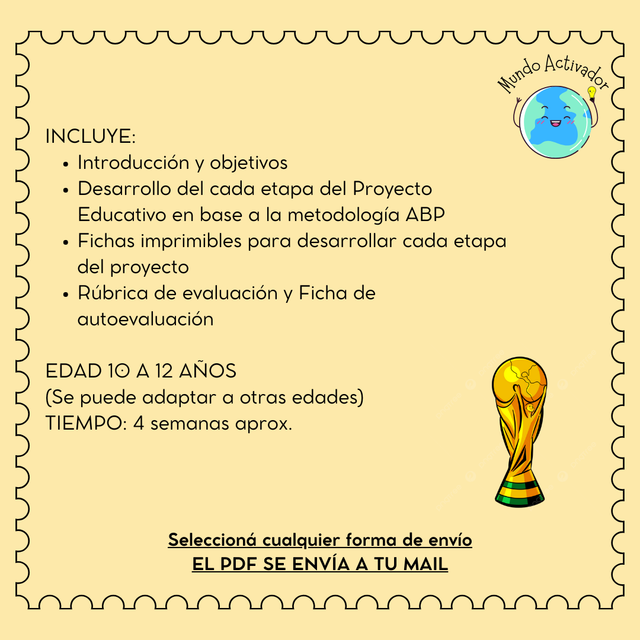 Los estudiantes investigan en grupos distintos países participantes del Mundial 2026, abordando aspectos geográficos, culturales, sociales y deportivos. Luego, comparten lo aprendido mediante exposiciones y dinámicas de socialización, permitiendo que todos accedan a la información de cada país. Posteriormente, se reorganizan en nuevas “selecciones del saber” y crean de manera colaborativa preguntas para una trivia integradora, que combina los conocimientos de todos los países trabajados. El material incluye las fichas para desarrollar el proyecto.